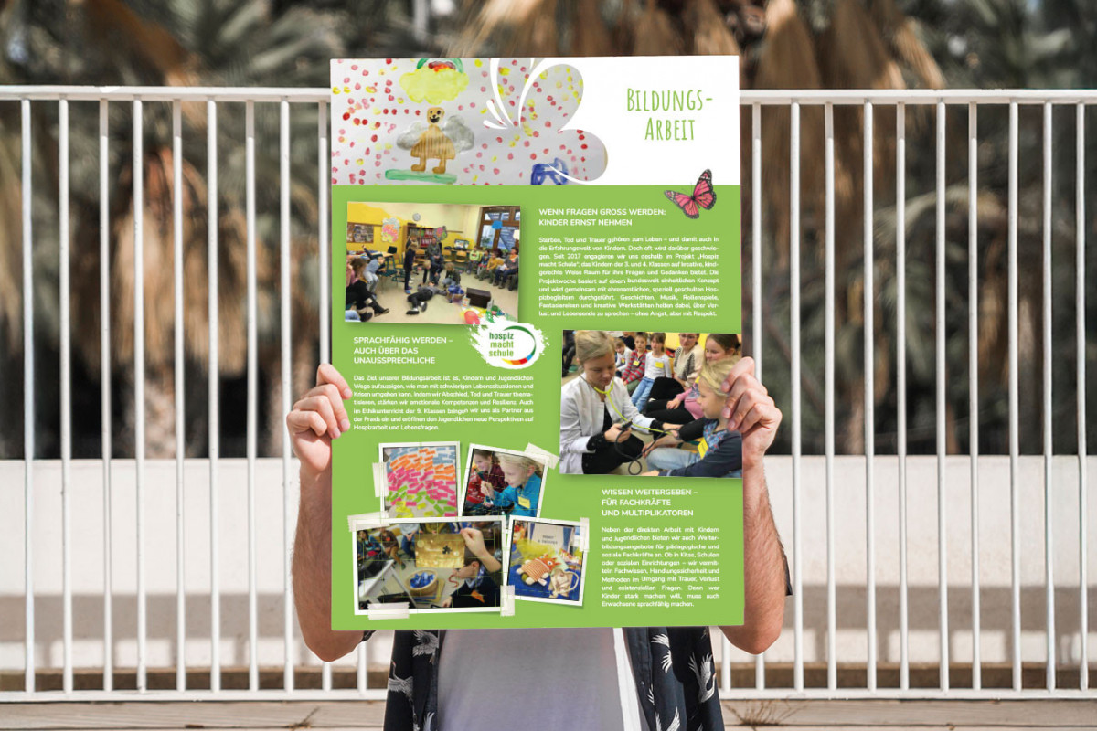 Seit 1990 begleitet, stärkt und unterstützt der Verein Familien, deren Kinder an Krebs erkrankt sind. Aus einer kleinen Initiative engagierter Eltern ist in 35 Jahren ein Netzwerk voller Herz, Empathie und Tatkraft entstanden. Die Ausstellung erzählt von der Gründung, den wechselnden Standorten, dem Umbau des Elternhauses, der Hospizarbeit, der Geschwister- und Trauerarbeit, vom Ehrenamt und der Gründung der Beratungsstelle 2021. Jedes Plakat steht für einen Abschnitt dieser bewegten Geschichte – für Menschen, die Hoffnung geben, für Begegnungen, für gelebte Solidarität.