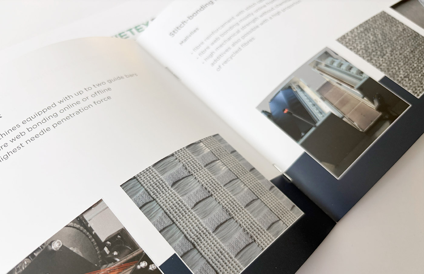 Internationale B2B-Verkaufsbroschüre für Schmietex Engineering und Naplafa: Über 70 Jahre Know-how im MALIMO Stitch-Bonding klar und substanziell auf Englisch kommuniziert – technische Kompetenz, Service und Positionierung als verlässliche Partner in der Textilindustrie.