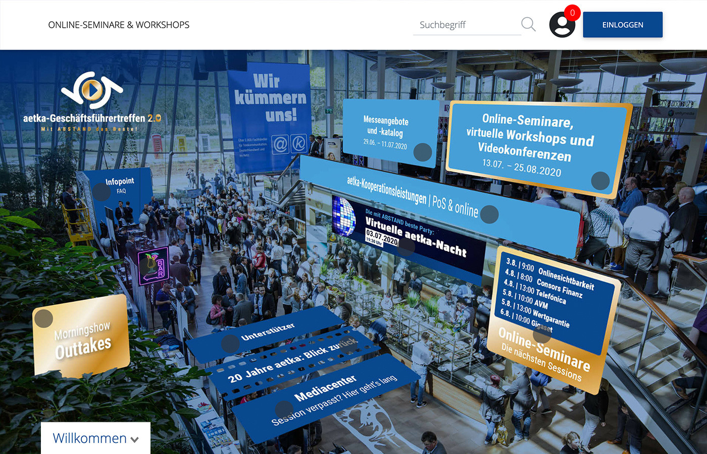 Aufgrund der Corona-Pandemie fand 2020 erstmals das Geschäftsführertreffen als virtuelles Event im digitalen Raum statt. Auf der interaktiven Web-Plattform www.aetka-treffen.de gab es passend dazu einen digitalen “Blätter”Katalog mit einem zweiwöchigen Messeangebotszeitraum. Alle aetka-Mitglieder konnten sich online registrieren und profitierten direkt von speziellen Angeboten und Aktionen.