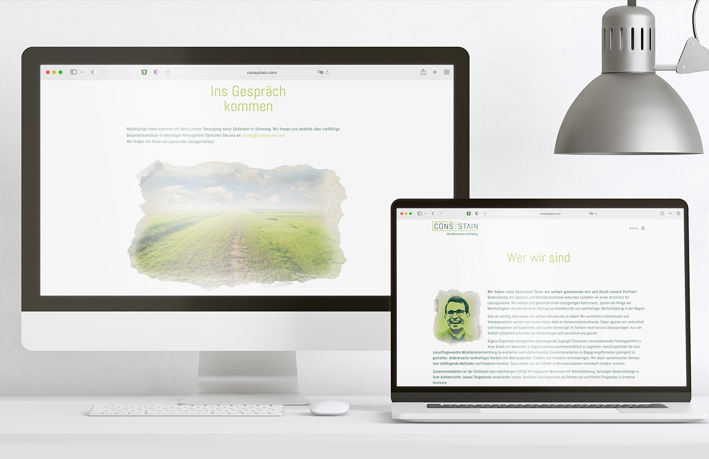 Die Aufgabe war es, eine wiedererkennbare Wortmarke zu erschaffen, die das Thema Kommunikation, Menschen und Nachhaltigkeit vereint. Da die besten Ideen oft beim Laufen kommen, habe ich mich zusammen mit dem Kunden – anstatt uns in ein dunkles Büro zu setzen – wortwörtlich in Bewegung gesetzt. Wir sind etwa zwei Stunden durch Chemnitz gelaufen und haben unsere Gedanken in Schwung gebracht. In lebendiger Atmosphäre entstand ein dynamischer und wachsender Markenprozess, der das Besondere der Marke consYstain herauskristallisieren ließ.