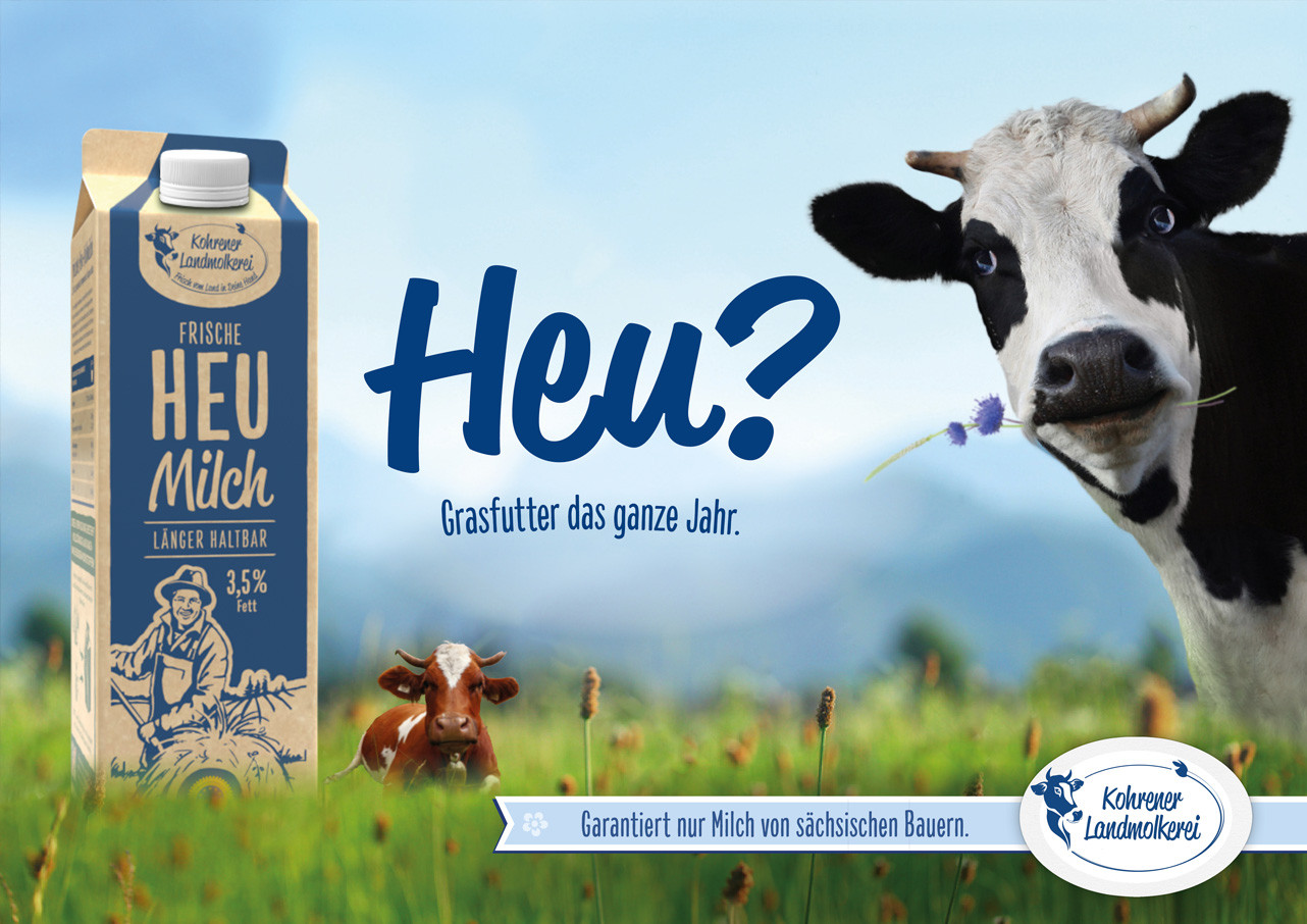 Die Kohrener Landmolkerei mit ihren Linien Bauernmilch und Heumilch bekamen 2020 ein neues Packaging-Design – erstmals seit vielen Jahren. Die Einführung des neuen Packaging-Designs soll nicht nur eine optische Veränderung, sondern auch Teil einer durchdachten Kommunikationsstrategie sein. Für die Agentur Dschoy hatte ich die Gelegenheit, in enger Zusammenarbeit eine Kommunikationsstrategie und ein mehrstufiges Konzept zu entwickeln.