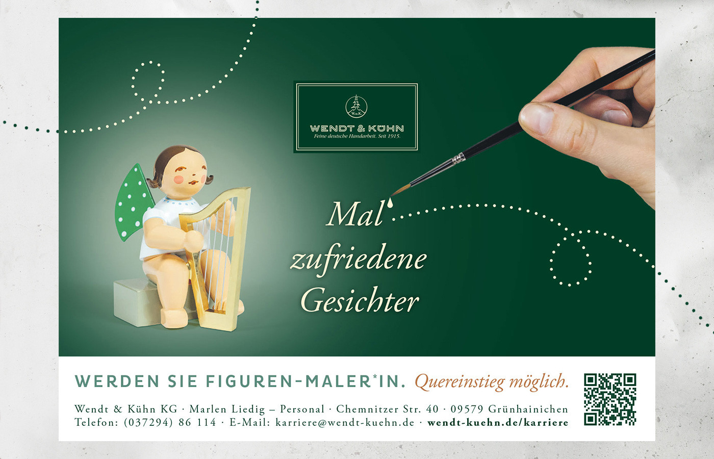 Das Suchen und Finden qualifizierter und passender Kandidaten ist heute oft eine große Herausforderung. Daher bietet sich eine gut durchdachte und geplante Recruiting-Kampagne als befristete Aktion an. YB-Design unterstützte gemeinsam mit der Agentur kopfsatz das Traditionsunternehmen Wendt & Kühn bei der Entwicklung kreativer Entwürfe. So entstand die Kampagne „Mal´Tradition“, die die weltbekannten Figuren in den Mittelpunkt stellt und gezielt den Beruf des Figurenbemalers hervorhebt. Gleichzeitig zeigt sie das traditionelle Handwerk, das viele Menschen mit ihrer Kindheit verbinden.