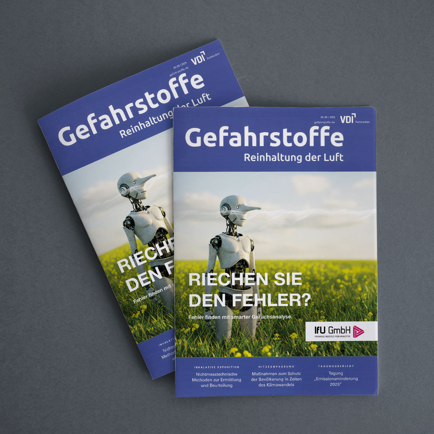 Für das Fachmagazin Gefahrstoffe – Reinhaltung der Luft, herausgegeben vom Institut für Arbeitsschutz der DGUV (IFA) in Zusammenarbeit mit der VDI/DIN-Kommission Reinhaltung der Luft (KRdL) – Normenausschuss, durfte ich erneut ein Titelbild gestalten. Mein Auftraggeber, die IFU GmbH – Privates Institut für Analytik aus Frankenberg, hat bereits mehrfach das Cover gebucht, passend zu seinen Fachartikeln im Innenteil.