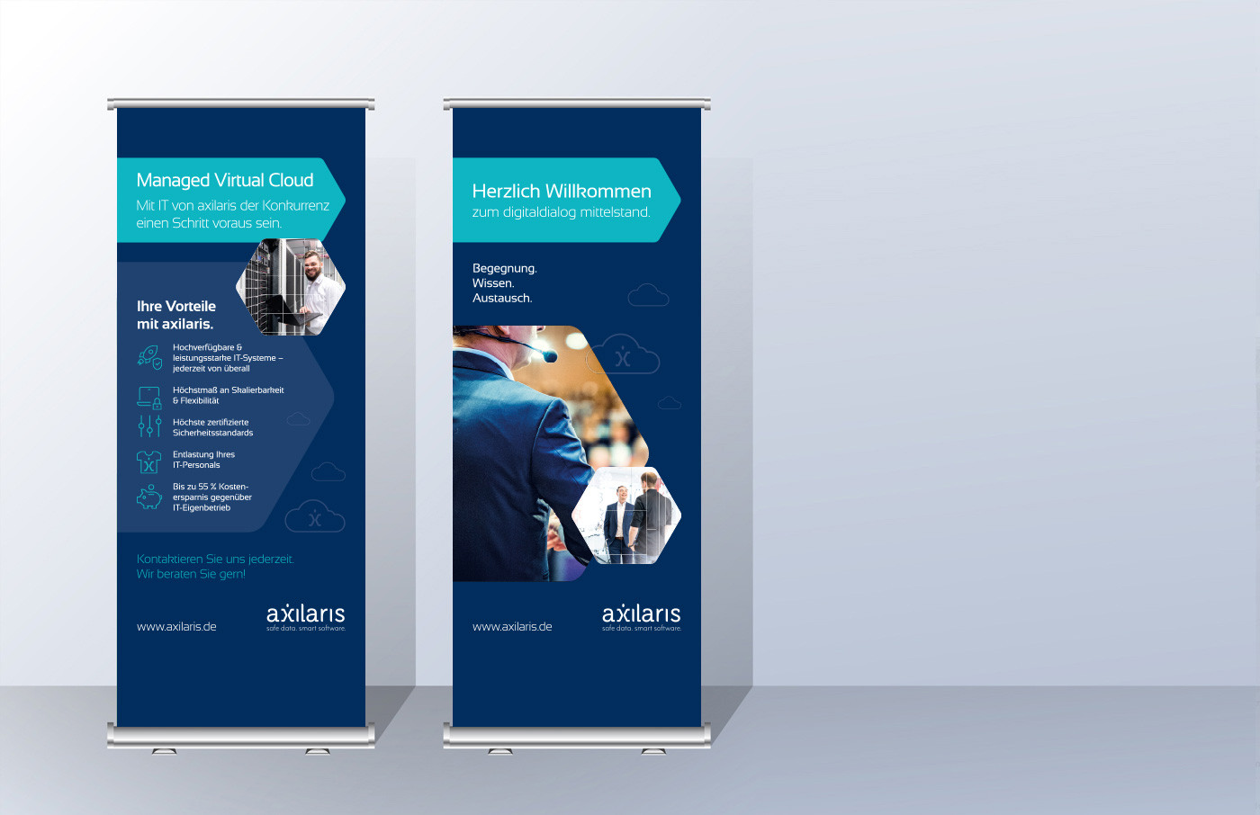YB-Design entwickelte eine breite Palette an Werbemitteln und -Medien zu verschiedenen Themen. Darunter fanden sich digitale Formate White Paper und Banner für Social Media, E-Mail und Websites, ergänzt durch Printmedien wie Flyer, Anzeigen und Roll-ups. Auch Gutscheine, Zertifikate und individuelle Einladungen wurden erstellt.