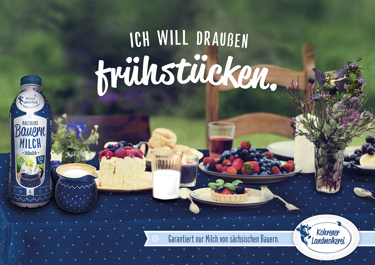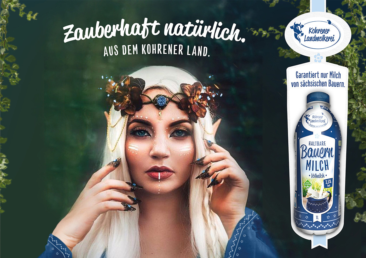 Da Frauen als Hauptzielgruppe beim Kauf von Lebensmitteln oft treue Gewohnheitskäuferinnen sind, erfolgt die Kommunikation in vier behutsamen Phasen. Durch vertraute Elemente wie das blaue Pünktchen-Design und die Betonung regionaler Qualität bleibt die Verbindung zur bisherigen Markenwelt erhalten. Gleichzeitig vermitteln emotionale Botschaften ein Lebensgefühl von Natürlichkeit, Geborgenheit und Magie. Von der behutsamen Einführung des Designs über kreative Werbemaßnahmen bis hin zur Inszenierung des Kohrener Landes als zauberhafte Region – die Strategie spricht die Sinne an und schafft eine starke, emotionale Bindung zur Marke.