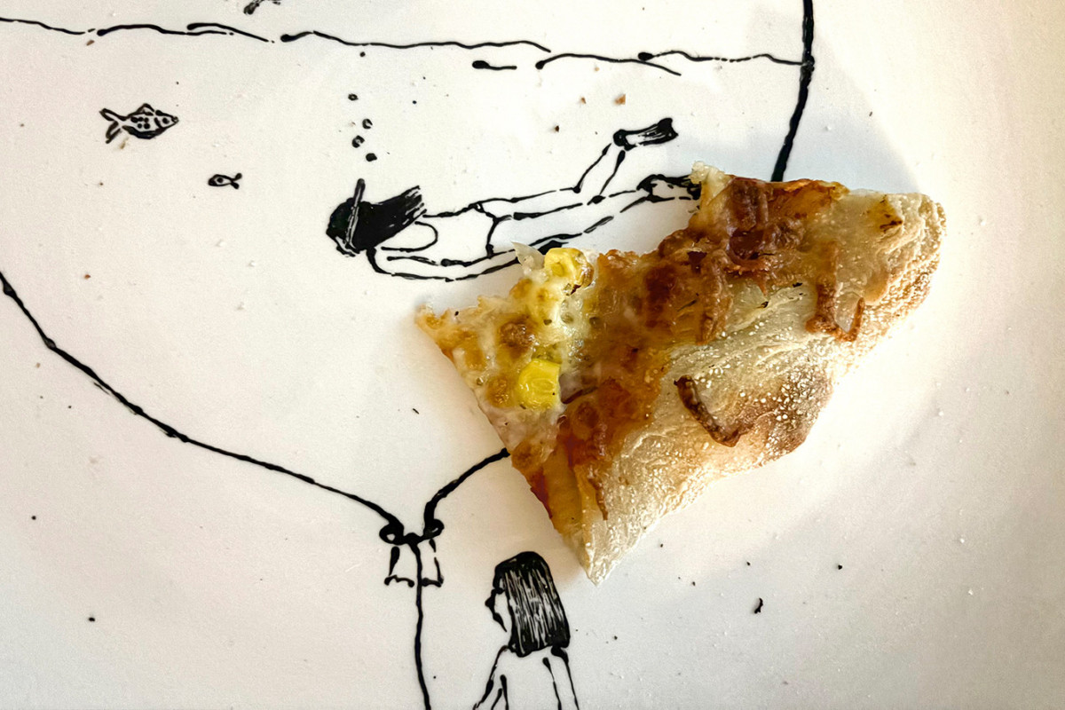 Und ich selbst? Ich habe mich dieses Mal an eine surreale Gestaltung gewagt. Erst drei Schichten Weiß, quasi Keramik-Grundierung deluxe, und dann ging es mit einer schwarzen Spritzflasche weiter, deren Öffnung so klein war wie eine Stecknadel. Zeichnen mal anders, aber unfassbar meditativ.