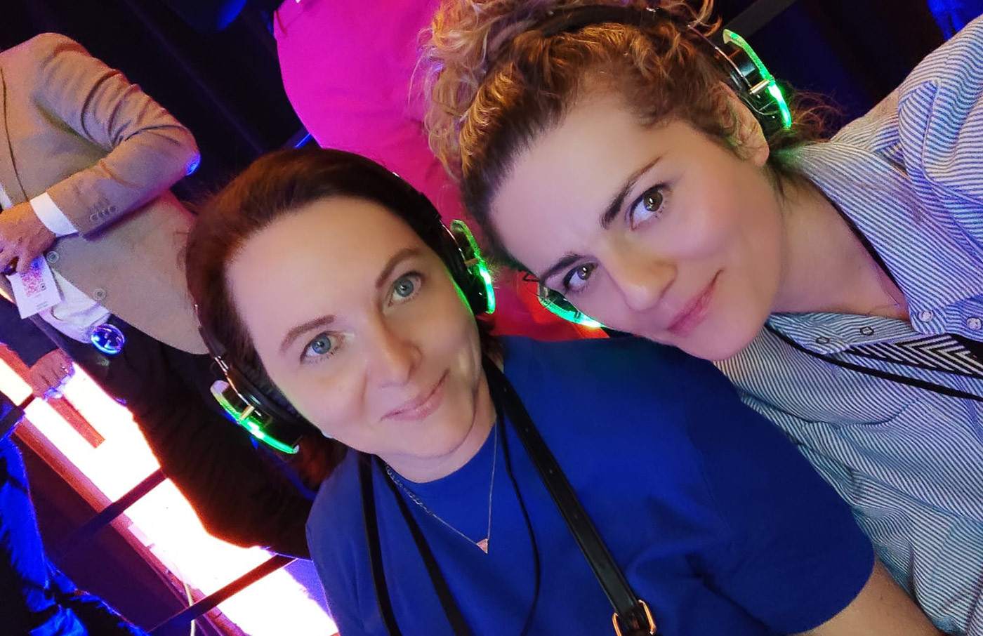 Durch den Abend führten Basketballer Malte Ziegenhagen und unter anderem die bekannte Tijen Onaran, die das Programm mit einer guten Mischung aus Lockerheit und Energie moderierten. Besonders interessant fand ich das Bühnenkonzept: Statt einer klassischen Bühne gab es zwei parallel bespielte Seiten. Die Besucher bekamen Kopfhörer und konnten per Kanalwechsel zwischen zwei Vorträgen hin- und herschalten. Auf beiden Seiten liefen Präsentationen auf Monitoren, während die jeweiligen Speaker unten auf der Bühne standen. So konnte man sich spontan entscheiden, welchem Thema man gerade folgen wollte oder einfach kurz „rüberhören“. Eine ungewöhnliche, aber ziemlich clevere Idee, um mehr Inhalte in einen Abend zu packen.