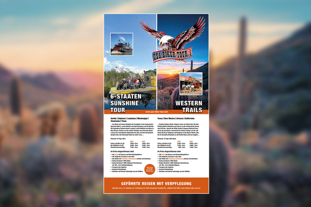 Manchmal beginnt eine neue Zusammenarbeit genau wie eine Reise: mit Neugier, einer Prise Abenteuerlust und der Vorfreude auf das Unbekannte. So war es auch bei meinem neuen Kunden Matthias Lux, der seit über 30 Jahren mit USA-Biker-Tour Motorradreisen in ferne Länder organisiert und begleitet.
